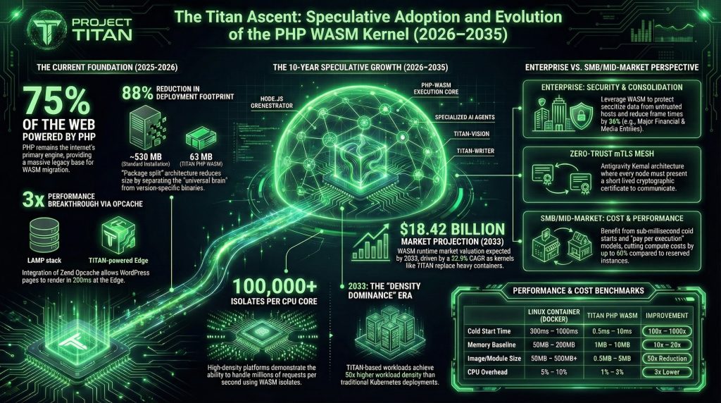 • The Polyglot WebAssembly (Wasm) Micro-Grid: We orchestrated a heterogeneous matrix executing code natively at the absolute edge. Wasm’s “deny-by-default,” capability-based memory model eliminates entire classes of OS-level vulnerabilities. We represent the next generation of PHP, operating with an 88% reduction in deployment footprint and a 10-20x smaller memory baseline than traditional containers.